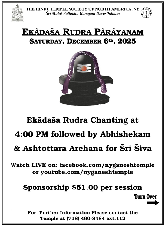Devotees may watch the LIVE Telecast on: Facebook.com/nyganeshtemple or YouTube.com/nyganeshtemple