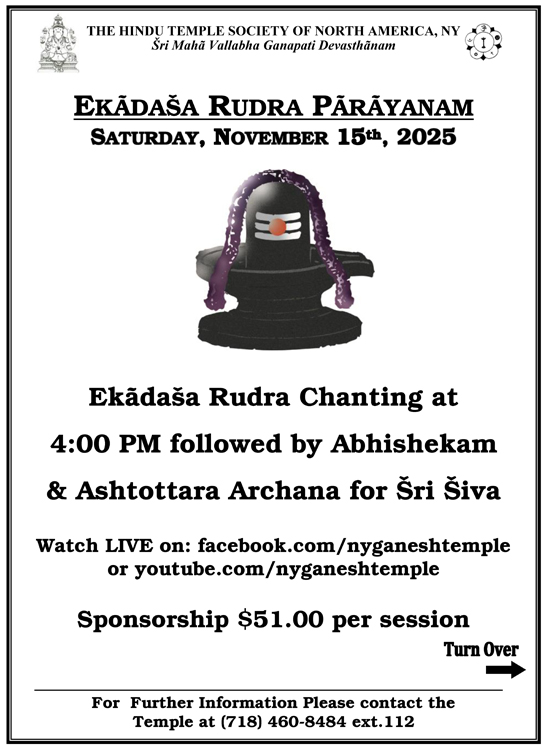 Devotees may watch the LIVE Telecast on: Facebook.com/nyganeshtemple or  YouTube.com/nyganeshtemple