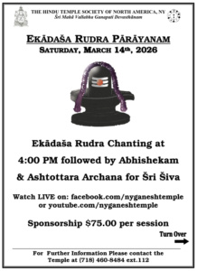 Devotees may watch the LIVE Telecast on: Facebook.com/nyganeshtemple or YouTube.com/nyganeshtemple